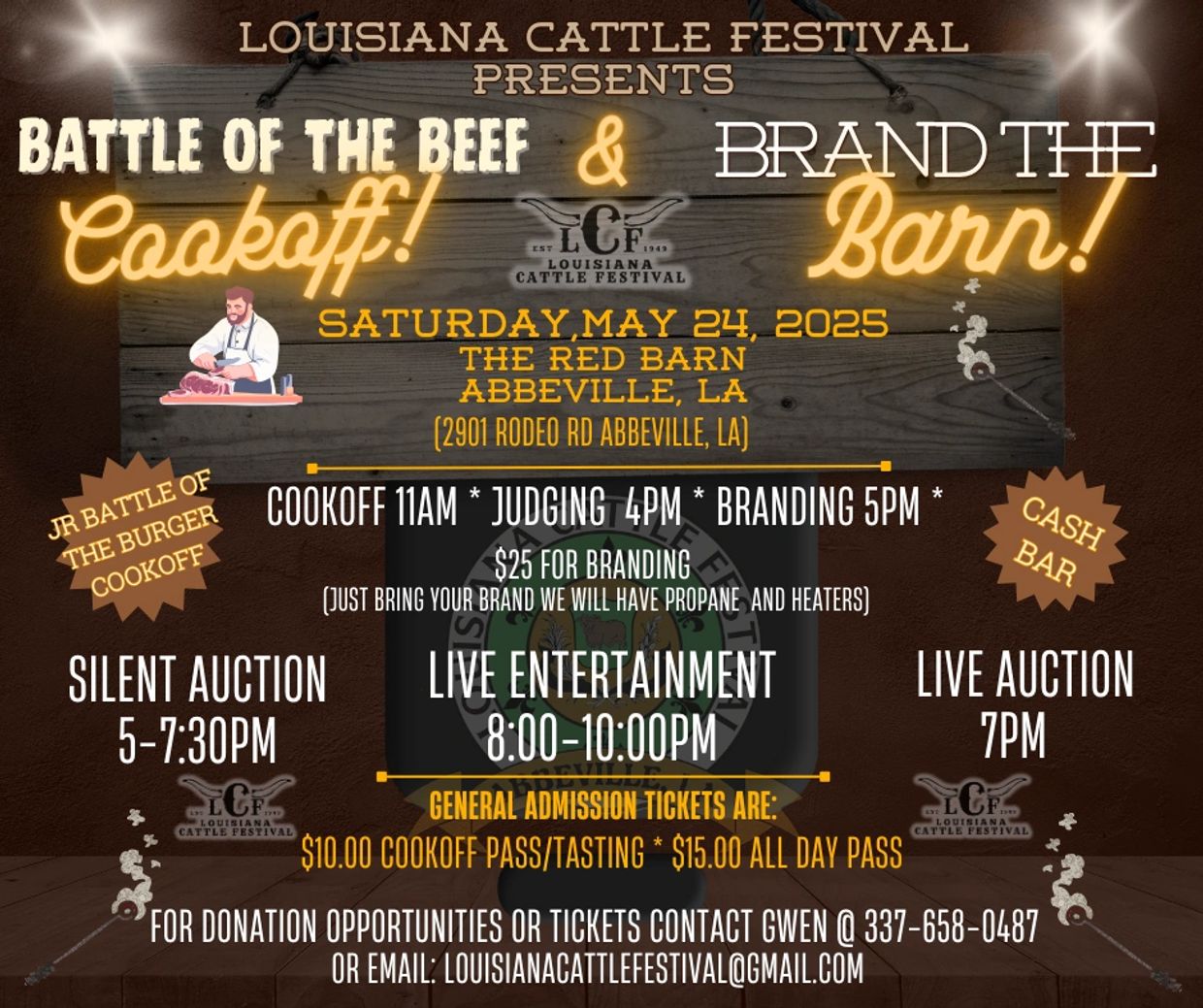 Join us Saturday May 24, 2025, as we host our 3rd annual Branding the Barn event at The Red Barn, 2901 Rodeo Rd, Abbeville, La.